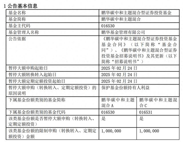 Choice数据显示,截至2月21日,鹏华碳中和主题混合基金收益达65.79%,永赢先进制造智选混合基金收益为62.15%。不过,鹏华基金在2月21日发布公告称,为保护基金份额持有人利益,鹏华碳中和主题混合自2月24日起,个人投资者单日单个基金账户累计的申购、转换转入、定期定额投资金额限额设置为100万元。